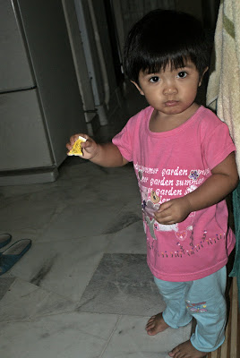 he was eating and eating non-stop. hujan lebat dh berenti pon, tak henti henti juge makan nyeee. hahaha. aiyooo. adeee je lah yg kitorng bahan dia. oh Luqman, nnt jgn dtg lagi ye. hahah. jokiiing silly ;p